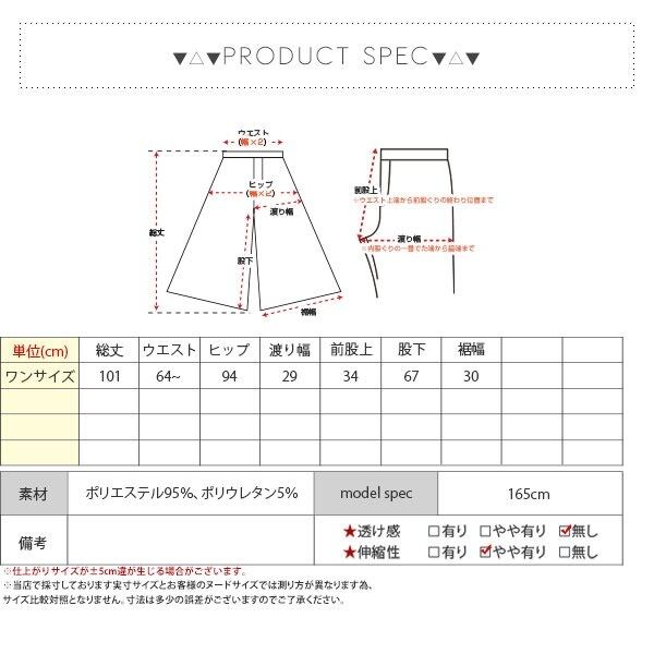 総丈:101cm ウエスト:64~cm ヒップ :94cm 渡り幅 29cm 前股上 34cm 股下 67cm 裾幅 30cm