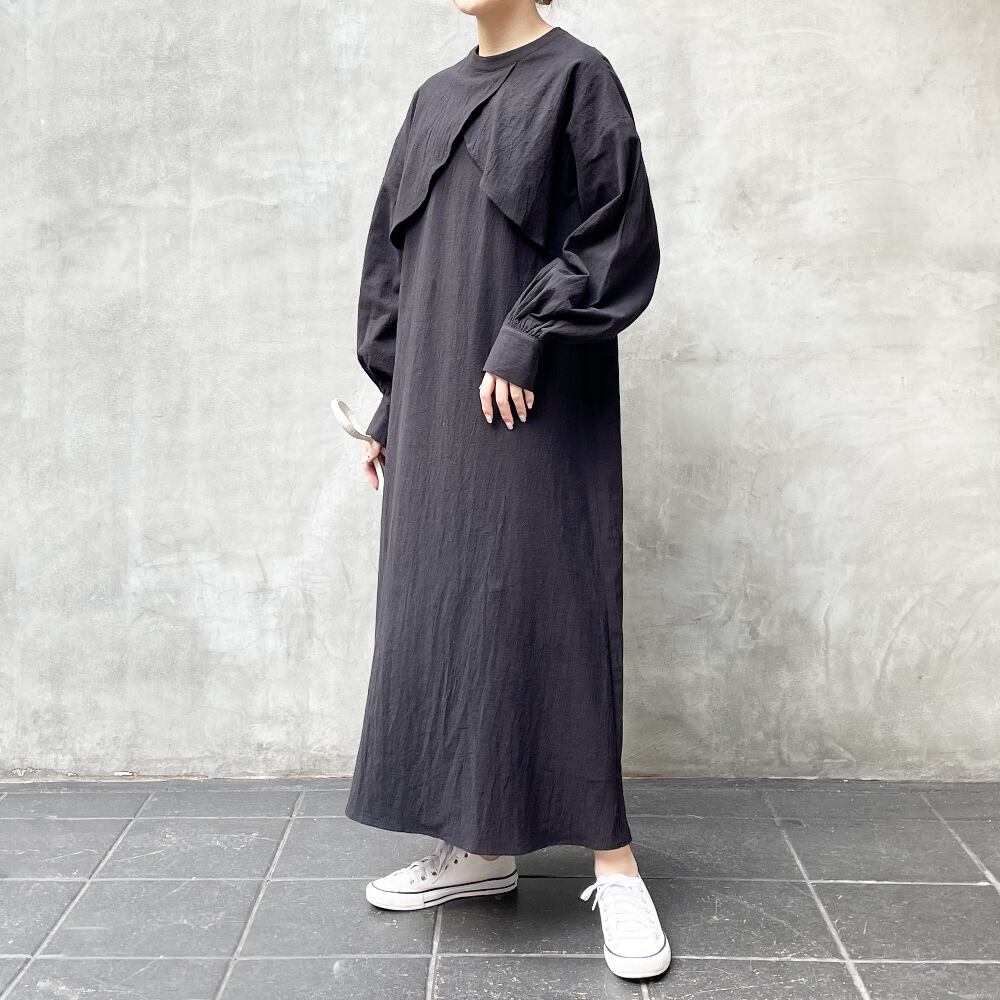 ケープデザインでシンプルなデザインに少しアクセントのあるワンピースです。
